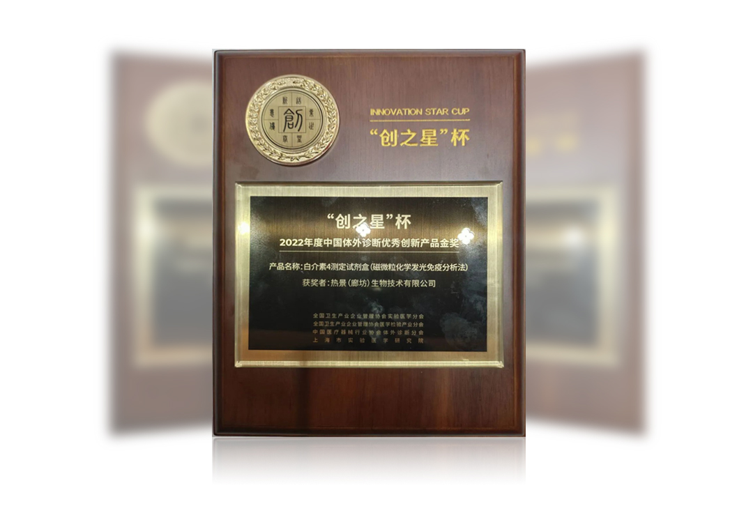 在5月27日“創(chuàng)之聲”第八屆中國實(shí)驗(yàn)醫(yī)學(xué)大會(huì)現(xiàn)場,熱景生物旗下熱景(廊坊)生物技術(shù)有限公司生產(chǎn)的專有特色細(xì)胞因子系列產(chǎn)品,榮獲2022年度“創(chuàng)之星”杯中國體外診斷優(yōu)秀創(chuàng)新產(chǎn)品金獎(jiǎng)。
