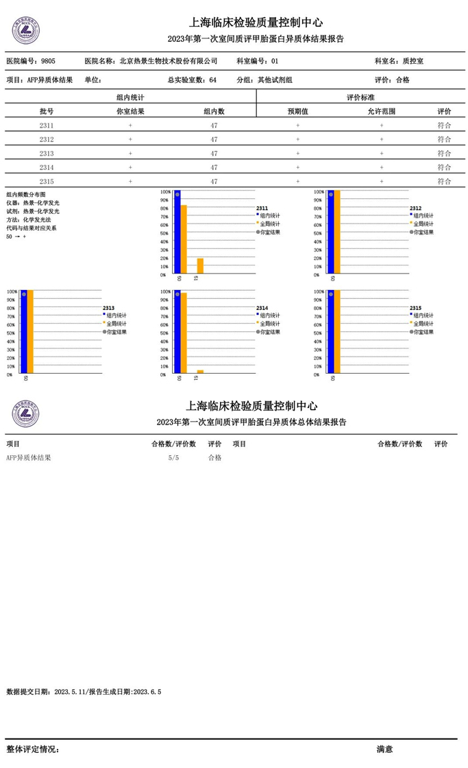 近日,國家衛(wèi)生健康委臨床檢驗(yàn)中心(NCCL)公布了2023年多項(xiàng)全國臨床檢驗(yàn)室間質(zhì)量評(píng)價(jià)結(jié)果。熱景生物旗下熱景醫(yī)學(xué)檢驗(yàn)實(shí)驗(yàn)室以100分的優(yōu)異成績通過“胃蛋白酶原”“血清降鈣素原”“N末端前腦鈉肽”“心肌標(biāo)志物”等室間質(zhì)評(píng)項(xiàng)目。同時(shí),熱景生物參與的上海市臨床檢驗(yàn)中心2023年第一次能力驗(yàn)證項(xiàng)目,包括B型鈉尿肽/N端-B型鈉尿肽前體、AFP異質(zhì)體比率、肌鈣蛋白I、降鈣素原等項(xiàng)目均通過驗(yàn)證,充分彰顯了熱景生物穩(wěn)定可靠的實(shí)驗(yàn)室質(zhì)量管理和檢測(cè)能力,以及強(qiáng)大的產(chǎn)品和技術(shù)實(shí)力!
