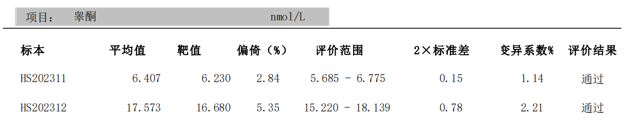 近日,由國家衛(wèi)生健康委臨床檢驗(yàn)中心組織的醫(yī)學(xué)參考測(cè)量能力驗(yàn)證計(jì)劃活動(dòng)(EQARL 2023)結(jié)果已公布。北京熱景生物參考溯源實(shí)驗(yàn)室申報(bào)的孕酮、睪酮、皮質(zhì)醇(氫化可的松)項(xiàng)目全部評(píng)價(jià)通過。這是繼我司參考溯源實(shí)驗(yàn)室2022年度順利通過國際RELA能力驗(yàn)證活動(dòng)后,又一里程碑結(jié)果。