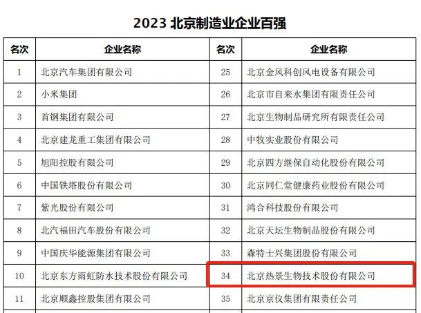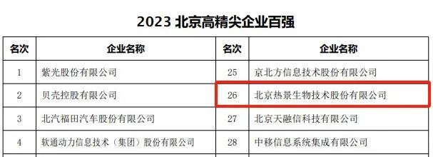 榮光時刻 | 熱景生物榮登2023年北京市高精尖企業(yè)百強榜!