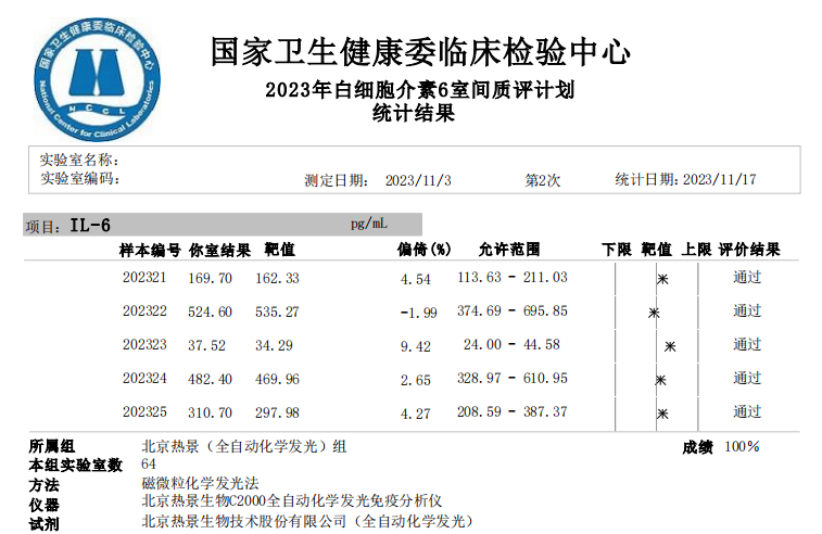 IL-6室間質(zhì)評成績單