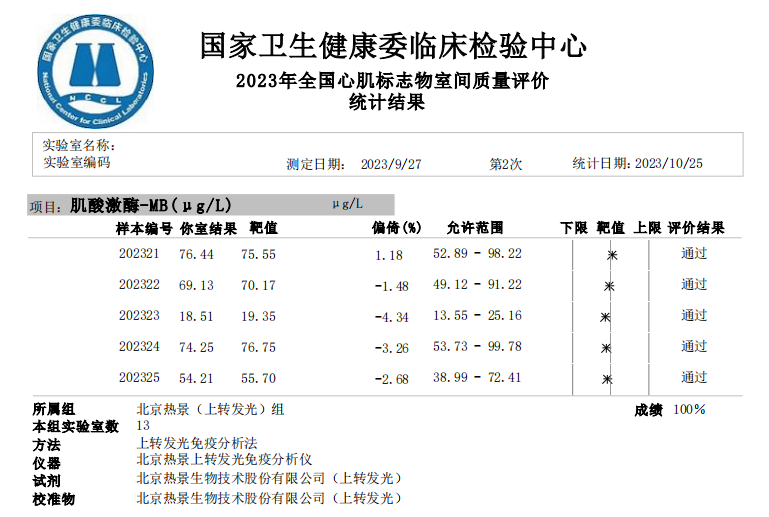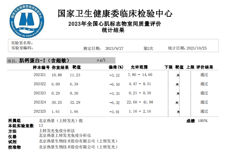 心肌標(biāo)志物室間質(zhì)評成績單(UPT、CLIA平臺(tái))