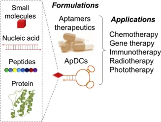 Aptamer是一段經(jīng)體外篩選得到的,折疊成特殊三維結(jié)構(gòu)的短單鏈寡核苷酸,能特異性結(jié)合較大范圍的目標(biāo),包括蛋白質(zhì)、小分子、金屬離子、病毒、細(xì)菌和全細(xì)胞,其高特異性和結(jié)合親和力可達(dá)到抗體水平。相比抗體藥物,核酸適配體具有體積小、較低免疫原性、無細(xì)胞化學(xué)合成以及較強(qiáng)組織穿透力、易修飾成本低等優(yōu)點(diǎn),在疾病診斷、治療和預(yù)防中有著廣泛的藥物應(yīng)用潛力。但其三維構(gòu)象受pH影響較大,親和性高度依賴于溶液性質(zhì)。第一款 Aptamer 藥物Pegaptanib于2004 年獲FDA批準(zhǔn)。它是一種具有29個(gè)核苷酸的RNA適配體,5’端的聚乙二醇部分可延長(zhǎng)其在人體內(nèi)的停留時(shí)間。Pegaptanib 通過空間結(jié)構(gòu)與血管內(nèi)皮生長(zhǎng)因子(VEGF)結(jié)合,抑制血管生成達(dá)到治療效果,因此被開發(fā)用于治療濕性年齡相關(guān)性黃斑變性。