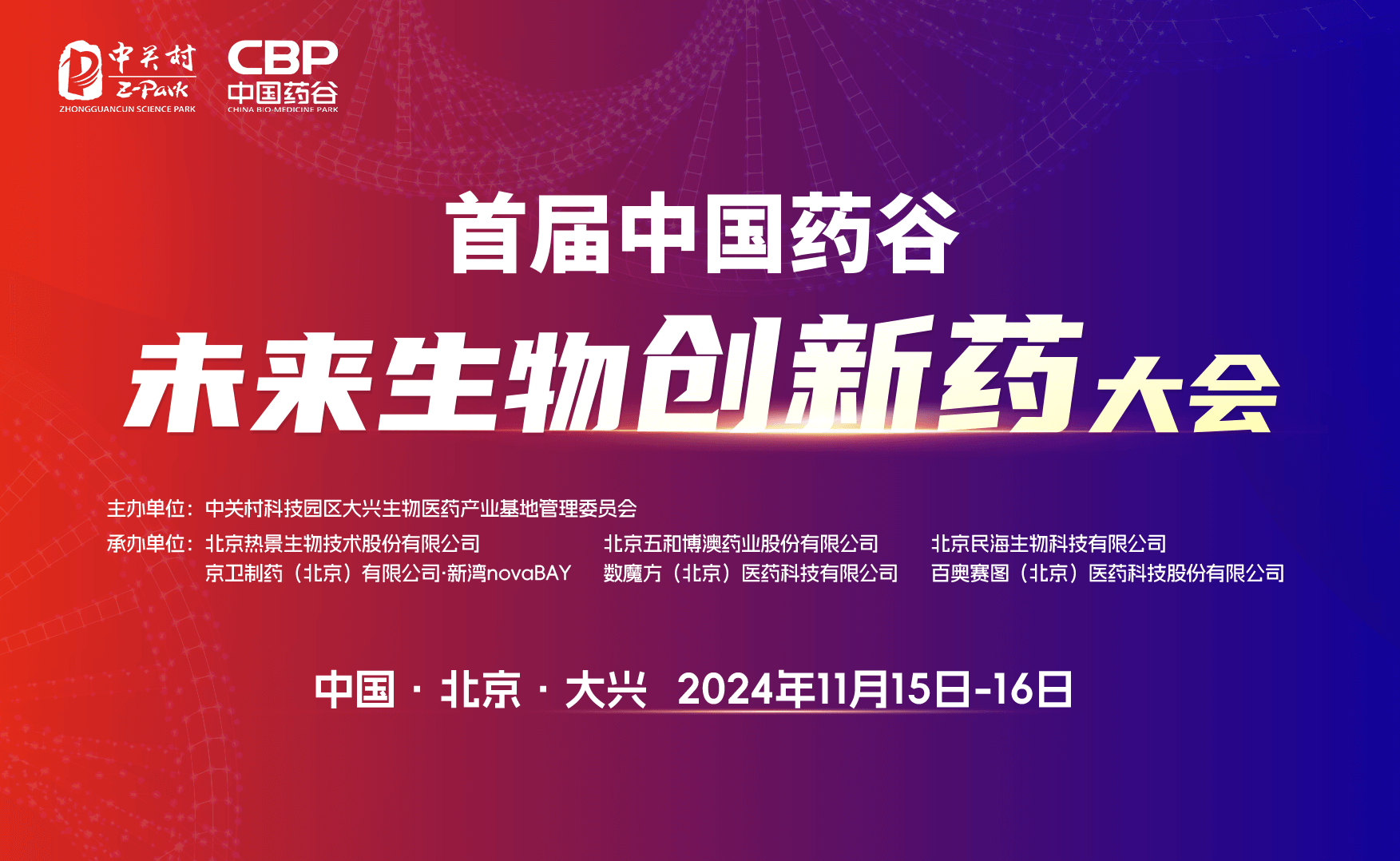 承辦單位:北京熱景生物技術(shù)股份有限公司、北京民海生物科技有限公司、北京五和博澳藥業(yè)股份有限公司、京衛(wèi)制藥(北京)有限公司·新灣novaBAY、百奧賽圖(北京)醫(yī)藥科技股份有限公司、數(shù)魔方(北京)醫(yī)藥科技有限公司