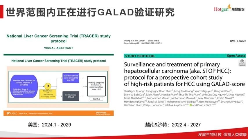 “肝癌三項(xiàng)”作為國(guó)際臨床認(rèn)可的有效指標(biāo),已獲得國(guó)內(nèi)外眾多指南和共識(shí)推薦。日本通過“肝癌三項(xiàng)+超聲”篩查體系將早診率提升至62%,而中國(guó)肝癌目前早期診斷率不足30%,亟需通過普及篩查等措施縮小與國(guó)際上的差距。熱景生物基于中國(guó)病患人群背景開發(fā)的C-GALAD模型,更契合中國(guó)肝癌高風(fēng)險(xiǎn)人群的分層管理需求,其臨床推廣對(duì)提高我國(guó)肝癌早期預(yù)警能力,改善肝癌患者生存率具有重要價(jià)值。值得一提的是,美國(guó)等國(guó)家先后啟動(dòng)了GALAD模型的前瞻性驗(yàn)證研究。在國(guó)內(nèi),熱景生物從核心優(yōu)勢(shì)出發(fā),率先啟動(dòng)了C-GALAD模型的大規(guī)模多中心研究,并積極投身于海南省衛(wèi)建委牽頭的早期肝癌篩查行動(dòng)中,以實(shí)際行動(dòng)為我國(guó)肝癌防治事業(yè)貢獻(xiàn)力量。