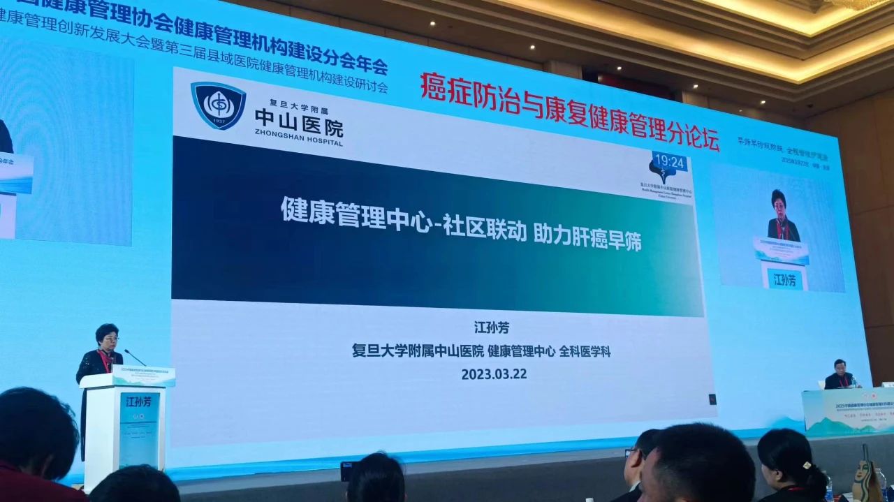 在《癌癥防治與康復(fù)健康管理》專(zhuān)項(xiàng)論壇中,復(fù)旦大學(xué)附屬中山醫(yī)院江孫芳主任受邀發(fā)表專(zhuān)題報(bào)告《健康管理中心-社區(qū)聯(lián)動(dòng) 助力肝癌早篩》,從臨床實(shí)踐與科研結(jié)合的角度,系統(tǒng)闡述了C-GALAD模型在肝癌早期篩查中的創(chuàng)新應(yīng)用價(jià)值。