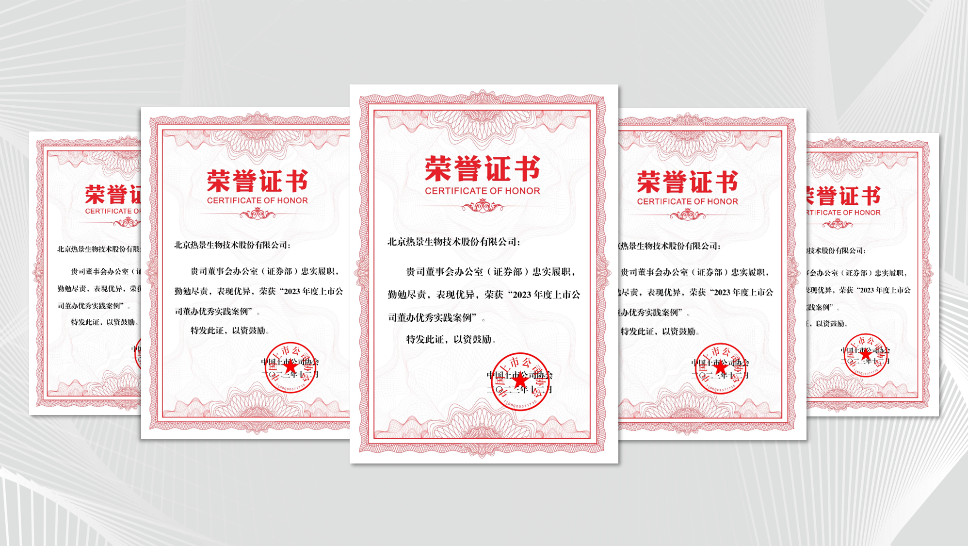 熱景生物獲評中上協(xié)“2023年度上市公司董辦優(yōu)秀實踐案例”