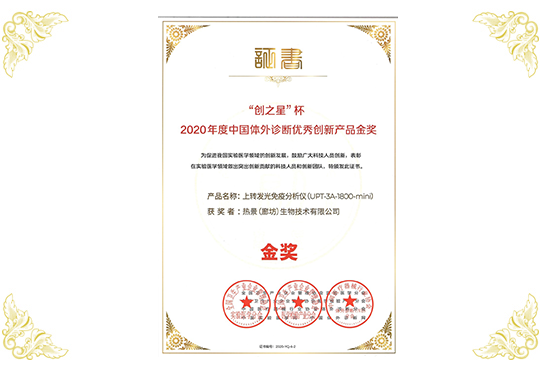 創(chuàng)之星杯2020年度中國(guó)體外診斷優(yōu)秀創(chuàng)新產(chǎn)品金獎(jiǎng)