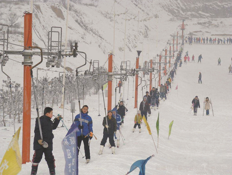 拖牽索道主要用于滑雪場的滑雪道,拖牽索道工作原理:按一定間距將拖牽器通過抱索器聯于鋼絲繩上,驅動輪帶動鋼絲繩運轉,乘客穿上滑雪板、雪橇或其它冬季運動裝備等,由拖牽器拖拽將乘客運轉至目標位置,實現拖載乘客的目的。